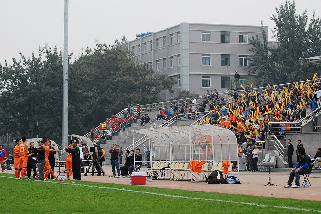 2009年10月10日,beat365中文官方网站东操场进行了一场保级大战,最终北京理工贵人鸟足球队以1:0战胜了同城大哥北京宏登队,由于在之后的比赛中四川队失利,北京理工贵人鸟足球队在少赛一场的情况下领先四川队8分,提前保级成功,而四川队的失利也同样让北京宏登队看到了保级的希望。