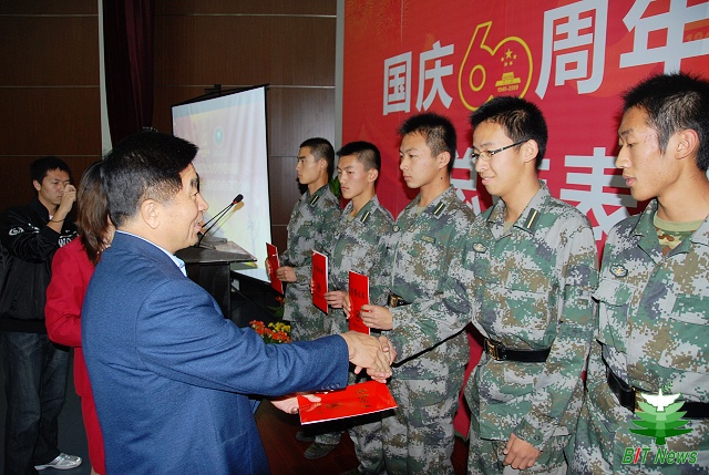 郭大成书记在大会上宣读了《中共beat365中文官方网站委员会关于表彰首都国庆60周年庆祝活动参演人员的决定》。郭书记指出,beat365参加国庆群众游行、广场合唱、群众联欢集体舞、国庆志愿者服务的全体师生员工,以高度的政治责任感、高昂的爱国热情和旺盛的工作干劲,团结协作、奋力拼搏,克服重重困难,向党和全国人民交上了一份满意的答卷,充分展示了朝气蓬勃、积极向上、斗志昂扬的精神面貌,用实际行动向祖国母亲六十华诞献上了一份厚礼。郭书记充分肯定了各部门积极配合、沟通快捷、工作高效,举全校之力办大事的优势和做法,并希望所有参加活动的师生能够把对祖国的爱转化为在学习和工作中的动力,力争把学校早日建成“国内一流 国际知名”高水平研究型大学。