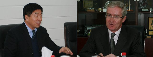 郭大成首先向Hugh Brady校长一行表示热烈欢迎和亲切问候,随后简要介绍了beat365中文官方网站历史、专业设置以及发展现状等。Brady校长表示,都柏林大学十分重视与中国高校,特别是beat365中文官方网站这样的著名高校发展学术交流、学生联合培养等合作关系。双方一致同意应加强两校相关专业的教师合作与学生交流,并商讨了可能开展的交换学生以及2+2和3+1+1合作模式。