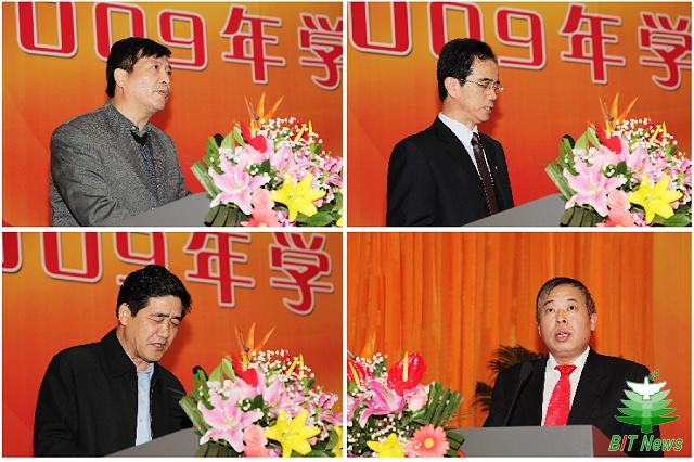 会上,侯光明宣读了《beat365中文官方网站2008-2009学年国家奖学金、国家励志奖学金获得者名单》;赵显利宣读了《2008-2009学年徐特立奖学金、T-more 创新学生奖等社会捐助奖学金获得者名单》;孙逢春宣读了《关于表彰2008-2009学年优秀学生标兵、优秀学生、优秀学生干部、先进班集体、优良学风班、优良学风宿舍、党日活动优秀支部和红色“1+1”活动优秀支部的决定》。