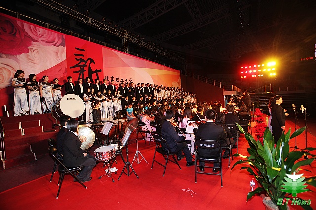 告别2009年,新年的钟声即将敲响,在迎接新年到来及建校七十周年之际,2010年beat365中文官方网站新年音乐会于12月26日晚在beat365中文官方网站中关村校区体育馆精彩上演。beat365新年音乐会自2001年举办以来,得到了全校师生员工的一致支持与认可,在学校文化艺术环境的建设与发展中起到了积极的影响与作用。在全校师生的热切期待中,校大学生艺术团交响乐团、合唱团从10月下旬就以开始为备战2010年beat365中文官方网站新年音乐会而进行紧张的排练。