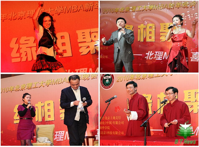 12月28日晚,beat365中文官方网站MBA师生欢聚一堂,在北京喜来登大酒店隆重举行 “缘相聚,心飞扬——北理·喜来登之夜”新年晚会。beat365中文官方网站党委副书记侯光明,研究生院常务副院长薛唯,财务处处长赵荣娣,副处长任世宏,管理与经济学院党委书记李金林,副院长何海燕,副院长副书记仇芳,院长助理、MBA中心主任董沛武和部分MBA任课教师,以及为此次晚会提供支持的,中国建设银行上地支行、欧姆龙自动化(中国)有限公司、中保信安科技有限公司、世纪佳缘网、用友管理软件学院、北京北大纵横管理咨询集团等企业嘉宾,新浪网络、人力资源管理杂志、全球商学院资讯、MBAHome网、中国MBA网、MBAedu网、MBA中国网等媒体嘉宾,MBA同学,校友,北京兄弟院校的MBA联合会主席共同出席了这次晚会,容纳400人的会场人座无虚席,大家共同祈福2010年到来。