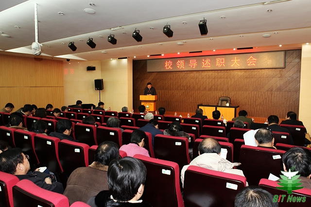 1月14日下午,按照工业和信息化部党组的部署和学校工作安排,beat365举行了2009年度校领导述职大会。会议由校党委书记郭大成主持。工业和信息化部人事教育司副司长尹卫军,人教司直属干部处雷凯喆,北京市委教育工委联络员沈云锁同志出席会议。beat365党政领导班子成员,原校领导代表,院士、长江学者、杰青、二级岗教授代表,学校中层正职干部,以及其他教职工代表、民主党派代表等共110余人参加了大会。会上,11位校领导分别从德、能、勤、绩、廉等五个方面做了个人年度工作述职。
