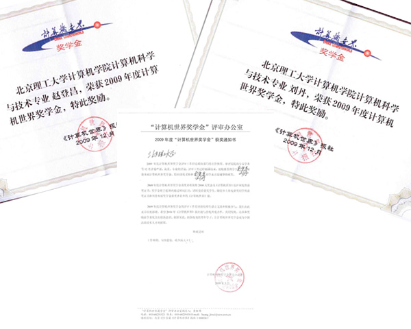 “计算机世界奖学金”,是中国计算机世界出版服务公司经教育部、工业与信息化部批准于1989年设立的国内首家媒体公益奖项,每年评选一次,旨在鼓励大学生注重计算机及信息技术领域应用成果的开发与研究。经过二十年的付出,“计算机世界”奖学金已经成为有特色、有影响的IT专业奖学金,成为鼓励大学生注重计算机及信息技术领域应用成果的开发与研究,激励青年学生奋发进取,培养中国优秀计算机科技人才和促进中国计算机教育事业的发展重要推动力量。