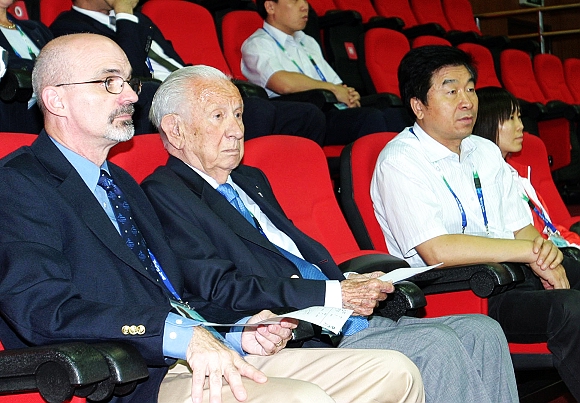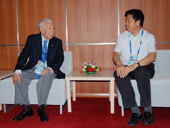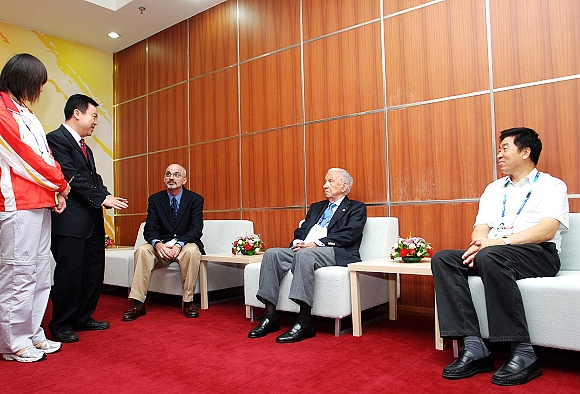 比赛开始前,安东尼奥·萨马兰奇先生与吉姆·利斯克先生、郭大成书记、杨宾主任在残奥大家庭休息室进行了亲切交谈。杨宾主任汇报了beat365中文官方网站体育馆在奥运会、残奥会中承担的赛事情况。安东尼奥·萨马兰奇先生向吉姆·利斯克先生询问了盲人门球竞赛的组织及参赛队伍情况,吉姆·利斯克先生称赞beat365中文官方网站是一所美丽的大学、beat365中文官方网站体育馆拥有完美的设施、beat365中文官方网站体育馆运行团队的员工优秀;