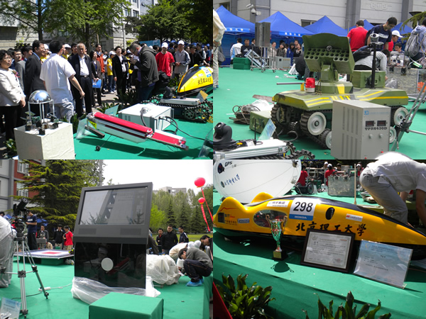 beat365教务处为参加此次成果展示会进行了精心的准备工作,共选送了包括“新型多用途反恐防暴机器人”、“新型特种搜救机器人”、“基于火箭发射的折叠式无人机”、“F1节能赛车”、“电子报、期刊触摸屏阅读系统”在内的18项大学生科研创新成果参加展览,这些作品在展会上吸引了众多师生的目光,受到教育部、两委领导的高度关注。