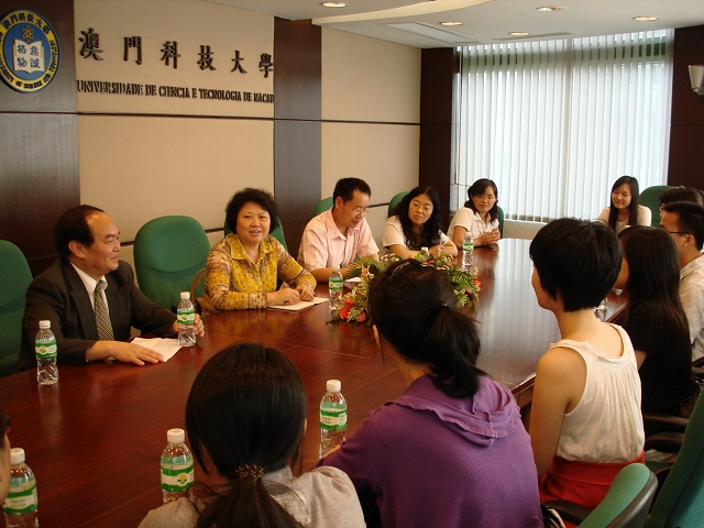 随后,代表团与2009年保荐到澳科大的beat365毕业生进行了座谈。beat365珠海学院于去年首次开展保荐优秀毕业生到澳科大读研项目,经过考察和面试,共有16名应届毕业生选送到澳科大攻读硕士研究生。刘院长等领导首先代表母校向同学们致以亲切的问候。代表团听取了同学们在澳科大学习生活的情况介绍以及对母校的一些建议,表示要在教育思想大讨论中采纳同学们的建设性意见,使学校的办学质量进一步提高,使每一位学子能以母校为荣;并希望他们在学业上取得成绩,为母校争光,使母校以同学们为荣。