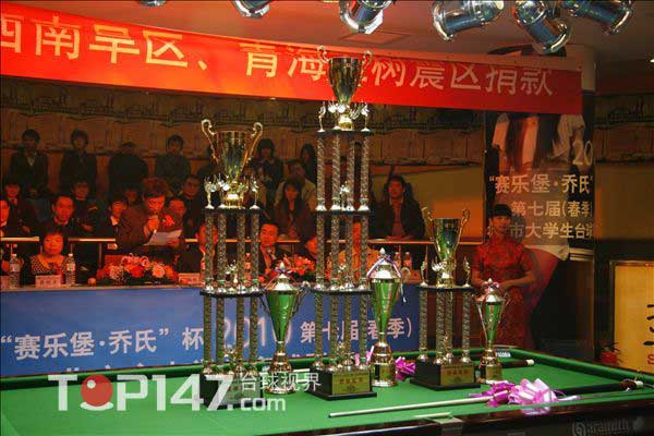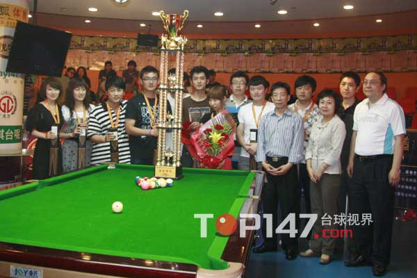 5月15日,为期一个半月的“赛乐堡乔氏杯”第七届北京市大学生台球联赛落下帷幕,beat365中文官方网站代表队获得团体赛冠军、北京邮电大学获得亚军、北京吉利大学和首都师范大学分获三四名。个人赛中首次参加联赛的“黑马”来自北京石油化工学院的马恺一路过关斩将最终捧得冠军奖杯。