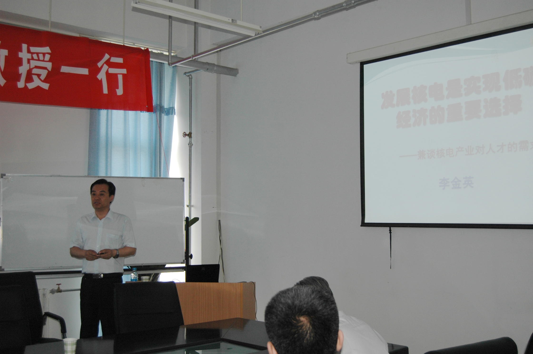 会后兼职教授李金英做了题为:“发展核电事业是实现低碳经济的重要选择,兼论核电产业对人才的需求”的报告。报告会后李金英教授参观了化工与环境学院的有关实验室。