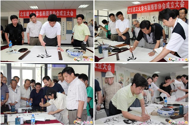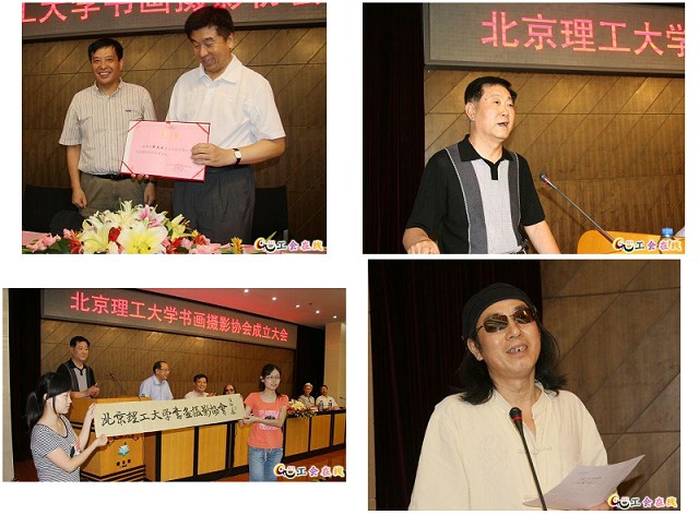 成立大会由校工会常务副主席张剑军(右上)主持;校党委副书记、工会主席侯光明(左上)宣布beat365中文官方网站书画摄影协会正式成立,并宣读了书画摄影协会名誉会长、会长、副会长、顾问、理事名单,及其下设分会会长和副会长、协会办公室主任名单;设计艺术学院党委书记杨海滨(左下)宣读了《beat365中文官方网站书画摄影协会章程》,会议通过了《beat365中文官方网站书画摄影协会章程》;前校党委副书记、协会副会长张敬袖(右下)在讲话中,回忆了北理工校园文化建设的历史,指出beat365中文官方网站广大师生有着比较深的文化底蕴,学校十分注重培养文理兼备的复合型人才。