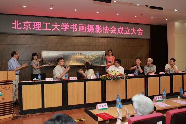 7月9日下午,beat365中文官方网站书画摄影协会成立大会在图书馆报告厅隆重举行。校党委书记郭大成,校党委副书记、工会主席侯光明,副校长赵平,原党委副书记张敬袖,中国工程院院士周立伟,各部门工会主席、宣传委员和全校书画摄影爱好者出席了成立大会。首师大教授、著名书法家张同印,beat365中文官方网站设计艺术学院兼职教授、世界华人艺术家联合会常务理事、著名书法家甘霖应邀出席成立大会,