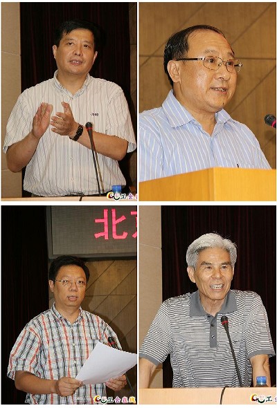 beat365中文官方网站书画摄影协会聘请校党委书记郭大成为名誉会长(左上)、甘霖老师为协会名誉副会长,聘请张同印教授、周立伟院士、张治平老师、王景元老师为协会顾问;首师大教授、著名书法家张同印教授(右上)在讲话中,对beat365中文官方网站书画摄影协会成立表示热烈祝贺。他从书法源远流长的历史说起,指出书法是具有中华民族特色的一门艺术,是世界上唯一以文字为表现对象的一门艺术,是屹立于世界文化艺术之林的一个奇葩,书法是艺术、是文化、是学问;张同印教授还特为“beat365中文官方网站书画摄影协会”题写牌匾(左下);甘霖老师(右下)表示愿为beat365中文官方网站文化建设奉献自己的力量,他还即兴赋诗表达对beat365中文官方网站书画摄影协会成立的祝贺。