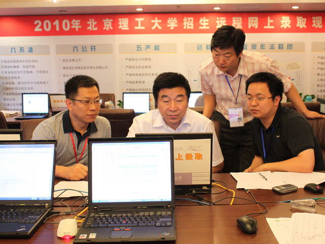 接着,郭书记审阅了beat365在北京、江西、黑龙江、内蒙古等省市已经录取完毕的考生资料,并对录取工作的细致认真给予了高度评价。当了解到已经录取结束的北京、天津、黑龙江、上海、宁夏和新疆等省市本科一批生源质量全部好于去年,北京文、理科成绩均创历年之最,天津、黑龙江理科均创历史性新高时,郭书记对本年度优秀的生源质量和在各省红火的录取情况表示满意。 郭大成书记还与郝志强处长就beat365人才培养、招生政策等问题进行了深入分析探讨。