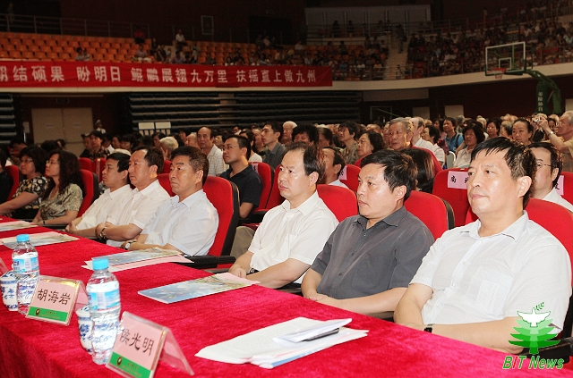 海淀区委常委、宣传部长李彦来,海淀区委宣传部常务副部长魏怀中,T-more研究发展基金会执行理事兼首席执行官厉一凡,beat365中文官方网站党委书记郭大成,校长胡海岩院士,党委副书记、工会主席侯光明,纪委书记杨蜀康,党委副书记、副校长李和章,各学院、部处中心的负责同志,以及近3000名师生员工和社区居民代表一同观看了演出。