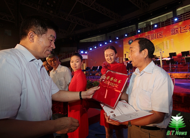 在慰问演出开始前,学校隆重举行了北京市教学名师奖、北京市优秀教学团队奖、T-MORE奖教金颁奖仪式。颁奖仪式由党委副书记、副校长李和章主持,海淀区委常委、宣传部长李彦来、党委书记郭大成等与会领导分别为获奖教师代表颁奖。