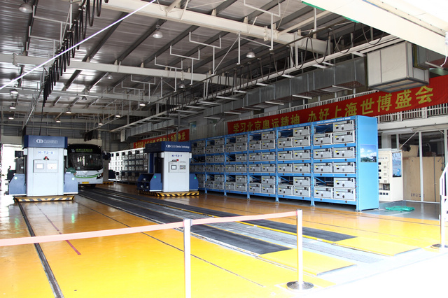 为保证每天超大规模的交通客流量,纯电动客车采用了快速更换电池技术。在电动客车进入充电站后,由动力电池自动更换设备为整车更换全套电池。片刻功夫,充满电的大客车就可以回到园区继续为游客们服务。