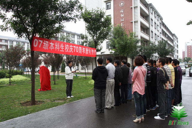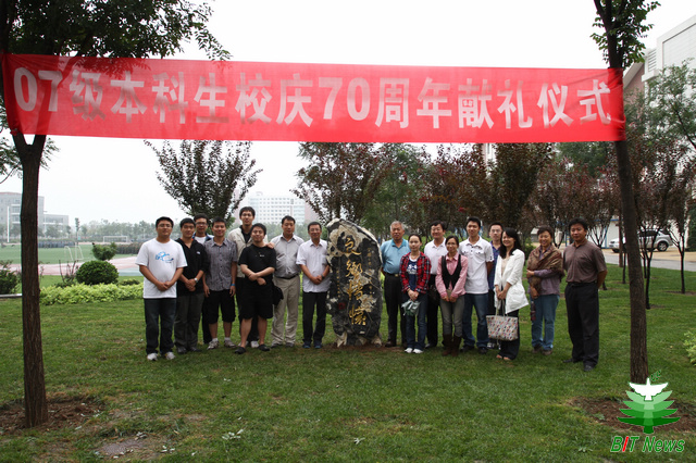 2007级学生是beat365良乡校区的第一批入驻学生,出于对学校热爱,他们自发的开展了此次捐赠活动。从活动策划到纪念石落成持续了近半年的时间。揭幕仪式上,2007级学生代表邓岩同学介绍了整个活动的策划、组织和实施情况。他说,“在母校70年周年校庆之际,我们2007级学生为母校献上一份薄力和一份心意,以铭记我们2007级在良乡校区度过的青春岁月”。