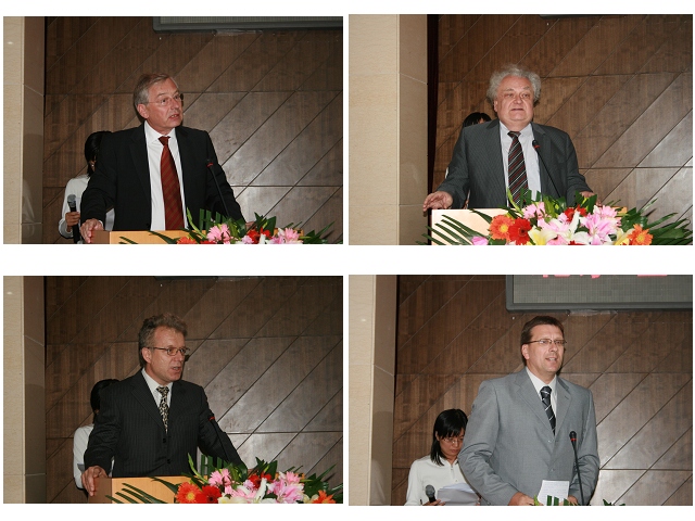 中心德方主任、卡尔斯鲁厄大学文学研究所所长乌韦•亚普教授(Uwe Japp)以及中心科研顾问、斯图加特大学哲学-历史学院院长、现代德语文学研究所所长霍斯特•托美教授(Horst Thomé)分别就中心未来的发展方向、合作领域、合作方式等进行了阐述;德意志联邦共和国驻华使馆公使衔文化参赞冯•马丁先生(Martin Fleischer),德意志学术交流中心主任韩北山先生(Stefan Hase-Bergen)、德国科学基金会中德科学中心德方副主任赵妙根教授以及歌德学院(中国)德语教学合作处主任胡朵拉(Cordula Hunold)博士分别向“德国语言文化研究中心”的成立表示衷心的祝贺。