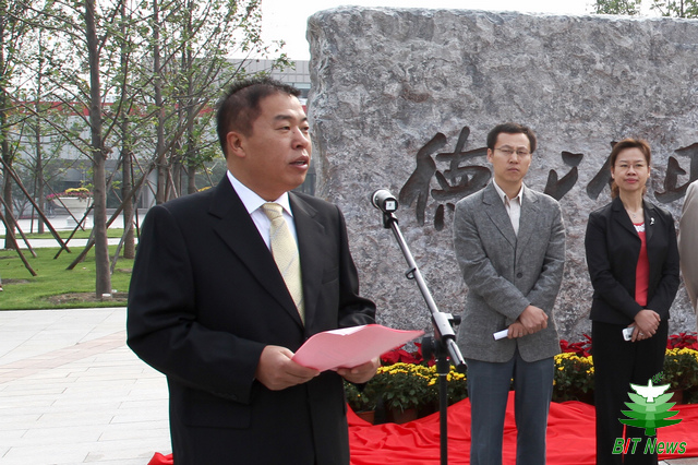 9月24日上午,北理工举行校训、校风、学风等雕塑在良乡校区落成揭幕仪式。党委书记郭大成、副校长杨宾、党委副书记、工会主席侯光明、副校长李和章出席。仪式由李和章副校长主持,党委宣传部、良乡校区基建办、良乡校区管理处、基础教育学院领导班子、教务处、学工部、团委等部门负责人、各学院副书记、副院长等出席。
