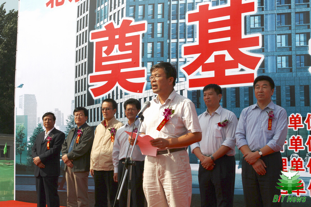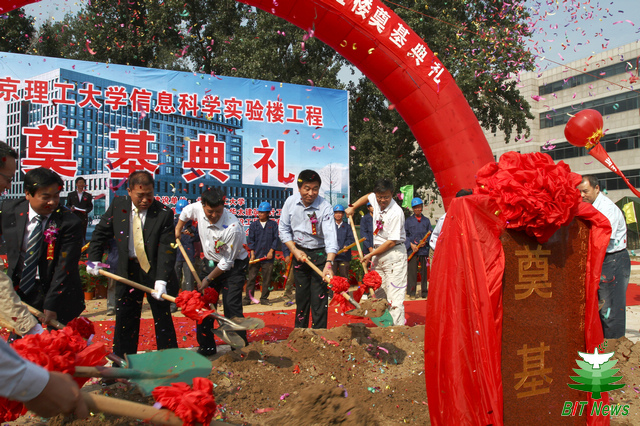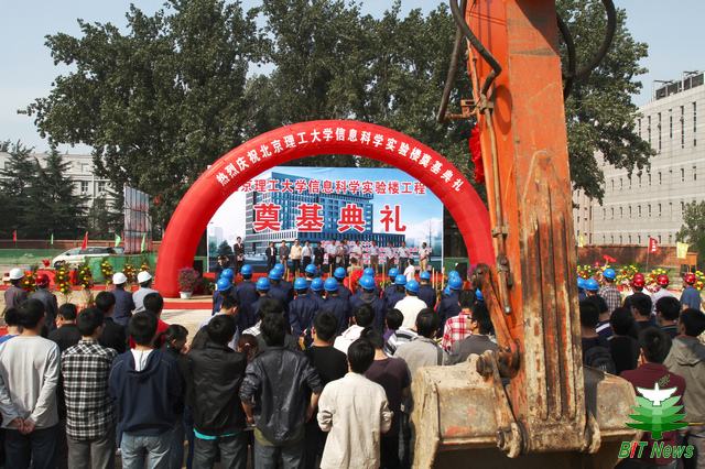 在各方通力配合及学校相关部门大力协助下,经过紧张细致的筹备,在学校建校七十周年之际,9月24日下午,信息科学实验楼工程奠基典礼在中关村校区隆重举行。参加典礼的领导有:郭大成书记、侯光明副书记、赵平副校长、孙逢春副校长、李和章副书记、副校长以及学校相关部门和学院的领导;高碑店市建设局局长于海涛、设计单位北京东方华太建筑设计工程有限责任公司总经理徐建伟、监理单位北京方正建设工程管理有限公司总经理牛灵明和施工单位高碑店市建筑企业(集团)公司总经理魏日华等参加了奠基典礼。奠基典礼由基建处处长刘明奇主持。赵平副校长、项目参建各方领导发表了讲话。