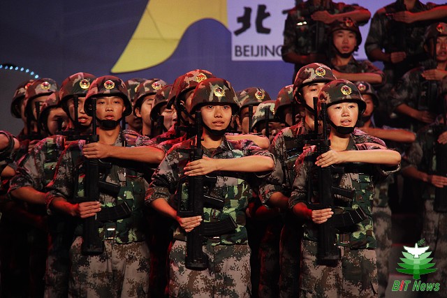 北理工国防生英姿飒爽的舞蹈《为了和平》拉开了整场晚会的序幕。