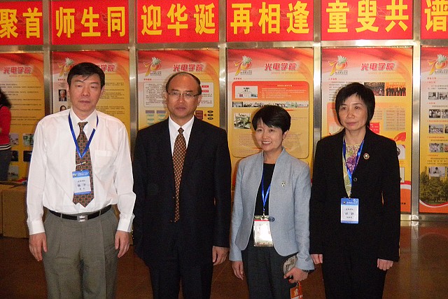 在光电学院校友接待室,许勤和当年的老教师俞信教授、安连生教授、张淑娥老师、钮保英老师等进行了热情的交谈,并与同班同学共叙当年同窗情谊,交谈结束后合影留念。