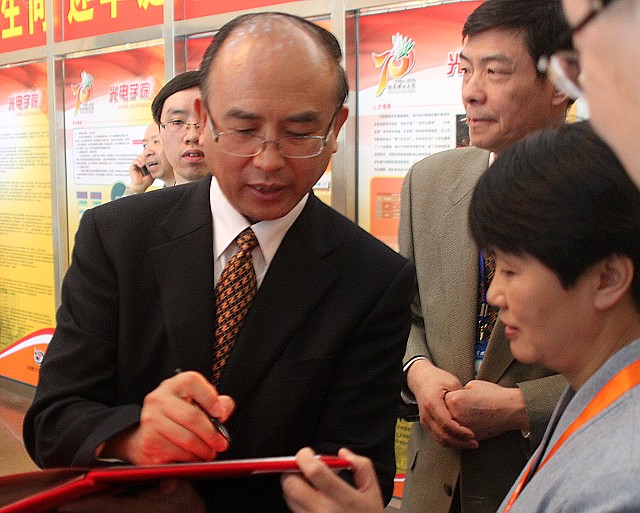 9月26日中午,校庆七十周年庆祝大会结束后,深圳市市长许勤作为光电学院78级校友,在院长魏平教授、书记韩宝玲教授的陪同下来到位于七号教学楼的光电学院校庆主会场参加庆祝活动。光电学院的领导及师生热情接待了许市长并向他赠送了学院的校庆纪念品。