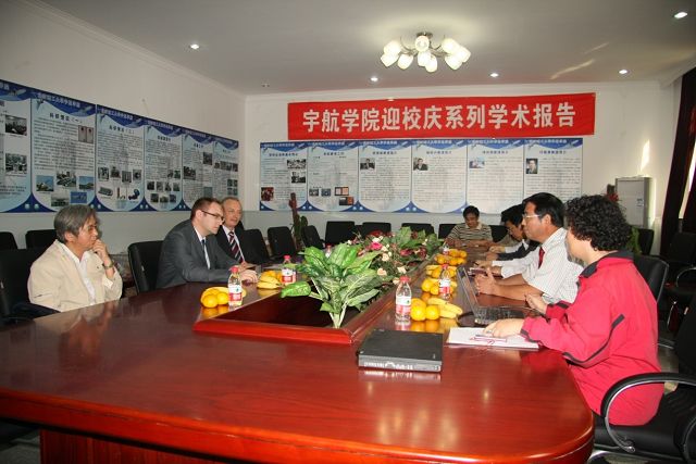 2010年9月24日下午,参加beat36570年校庆的萨马拉航空航天大学校长沙霍马托夫和副校长巴格达廖夫专程来宇航学院进行合作交流。宇航学院院长胡更开、化工学院党委书记黄晓鹏、宇航学院副院长唐胜景、荣吉利、崔平远,飞行器控制系主任魏志军、发射与推进工程系主任魏志军、冀四梅副教授等在3号楼一层会议室与萨航一行进行了座谈。