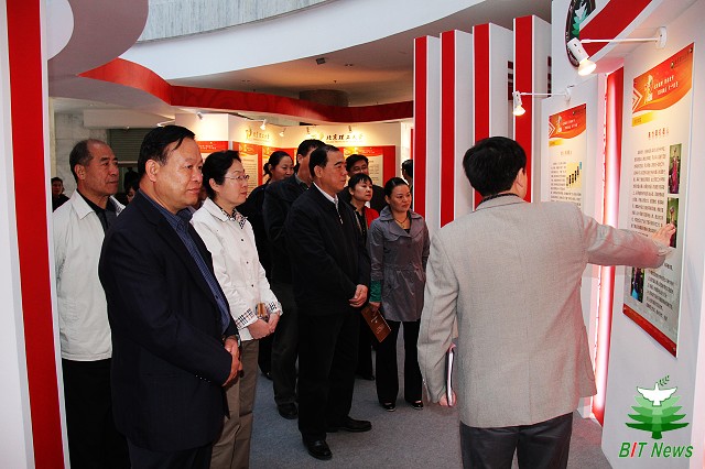 代表团一行参观了学校校史馆。侯光明书记为代表们讲解了学校在不同历史时期为国家和革命事业、为人才培养、为中国高等教育事业所作出的贡献和主要成果。
