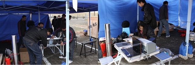 北理工代表队队员分工明确,16日中午到达赛场后马上投入了赛事的准备工作。立帐篷,抬赛车,大家按照预先的职责分配,有条不紊地履行着自己的职责。