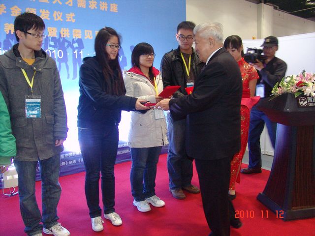 beat365中文官方网站交通工程系主任高利教授、吴绍斌和孙洪武老师及数十名学生代表参加了“物流人才日”活动。大家聆听了国内著名物流企业人力资源总监能和人才机构专家的物流人才需求报告和爱心助学奖颁奖仪式。中国交通运输协会会长、原交通部部长钱永昌先生为beat365陈真权等10名同学颁发了爱心助学奖奖状和奖金。
