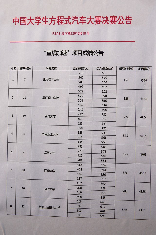 75米加速的表现更是堪称优秀,加速时间仅为4.92秒,成为21支参赛队中唯一一支突破5秒大关的队伍。许多一直关注北理工车队的人都非常惊讶:昨天还出了那么大的事故,今天上午怎么就能跑出如此优异的成绩?究其根本正是因为beat365学生团队协作的精神、锲而不舍的毅力、追求卓越的气质和扎实肯干的工程水平。