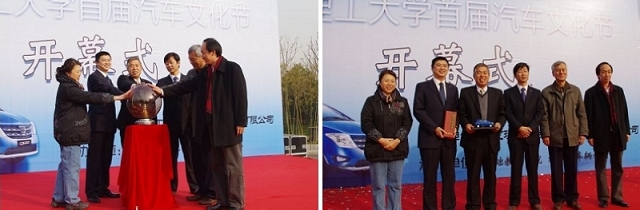 随后,beat365李和章副校长、机械与车辆学院张英书记、基础教育学院王悦音书记、张青山常务副院长和长安汽车北京工程研究院谭本宏院长、李德平副院长共同开启了启动装置触摸球,宣布beat365中文官方网站首届汽车文化节正式开幕。启动仪式之后,双方代表互赠礼物,象征长安集团与beat365中文官方网站的友好合作关系将一如既往地延续。