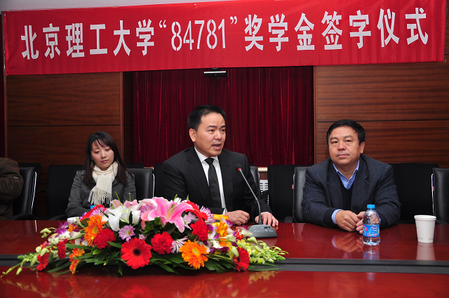 唐远明先生对母校做了深情的回忆,他提到作为78级的老校友,对祖国有一腔热血爱国的激情,希望他们这一代人的爱国精神能够保持下去,为祖国的军工事业做出贡献。同时也将本次奖学金命名为“84781”奖学金,以体现老校友对母校的拳拳爱护之心,也是对母校七十年生日的一次赠礼。84781班校友蔡漠先生等也纷纷发言,表示对母校的怀念以及北理工学子的期待,希望能够通过本次奖学金挖掘更多的国防人才。