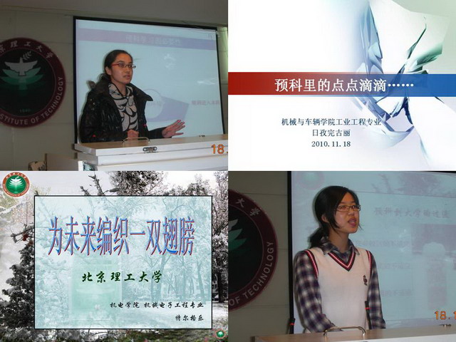机械与车辆学院的2009级硕士研究生日孜完古丽同学来自新疆,维吾尔族。日孜完古丽同学围绕着个人简历的基本要素,结合自己的亲身经历,向同学们讲解了如何安排自己的预科阶段的学习和生活,不断完善自己的“人生简历”,使得这份简历填写得精彩而充实。