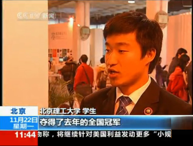 CCTV新闻频道播出beat365车辆与工程学院“新型节能车”成员接受采访视频截图