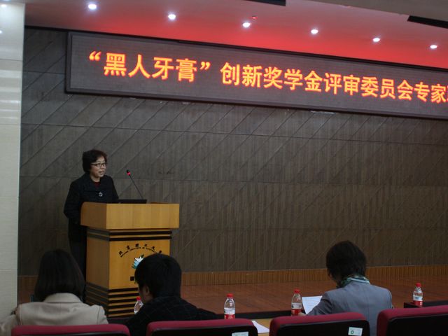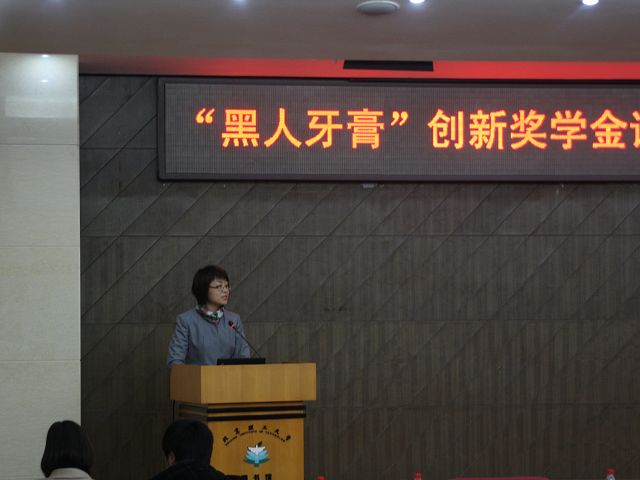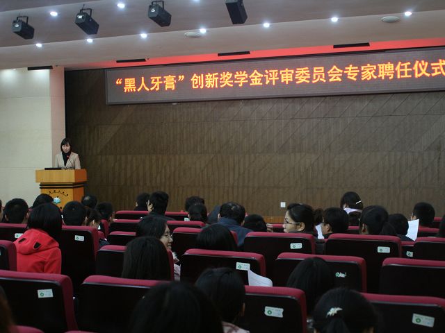 2010年12月8日,“黑人牙膏”创新奖学金评审委员会专家聘任仪式在图书馆报告厅隆重举行。好来化工(中山)有限公司研发部副总监施瑶女士、研发部项目负责人徐娟女士、beat365中文官方网站理学院院长胡长文教授、院长助理邵会波教授、化学系副主任张小玲教授、化学系曲良体教授、张韫宏教授出席聘任仪式。理学院团委书记王晶晶老师主持本次聘任仪式。