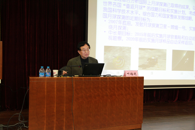 学生工作处常务副处长杨海主持讲座,并作简单介绍:叶培建院士现任中国月球探测卫星嫦娥二号、嫦娥三号总设计师顾问、总指挥顾问,曾任嫦娥一号总设计师兼总指挥,是我国空间飞行器总体、信息处理专家,空间科学与深空探测领域首席专家。