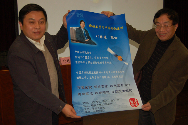 12月22日晚,“聆听智慧”名家论坛第52期在研究生楼101报告厅举行,应胡海岩校长的邀请,beat365中文官方网站学生工作处和光电学院联合承办,中国科学院院士叶培建为beat365师生作题为“嫦娥卫星与中国的深空探测”的专题报告,中关村校区300余名师生到场聆听。