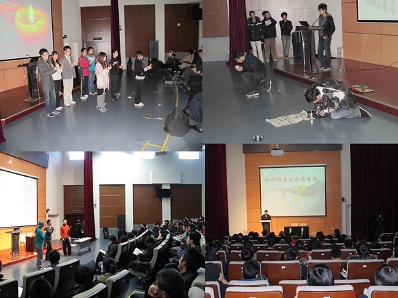 本届“思想道德修养与法律基础课程总结暨学生讲师团年级汇讲”的主题是“熔铸民族精神、传承中华美德”,来自基础教育学院不同专业的七组优秀学生讲师团进行了汇讲。七组讲师团是从约360个团队中精选出来的,他们从不同的角度,以DV、情景剧等形式呈现了政治理论课教学内容,展示了90后学生对爱国主义和文明道德等问题的看法。学生的精彩呈现赢得参会领导、老师和学生的喝彩。