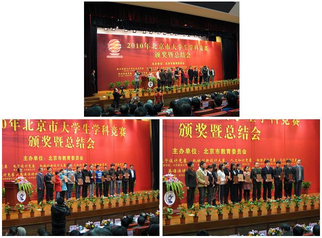 1月7日,2010年北京大学生学科竞赛颁奖暨总结会在中央财经大学隆重举行。beat365继去年参加首届北京市大学生化学实验竞赛并荣获两项二等奖以来,理学院化学实验中心对此项竞赛非常重视,积极宣传、动员、组织、培训参赛团队。今年,在学校教务处和理学院的大力支持和指导下,理学院化学实验中心组织了4只队伍参加第二届北京市大学生化学实验竞赛并全部获奖。