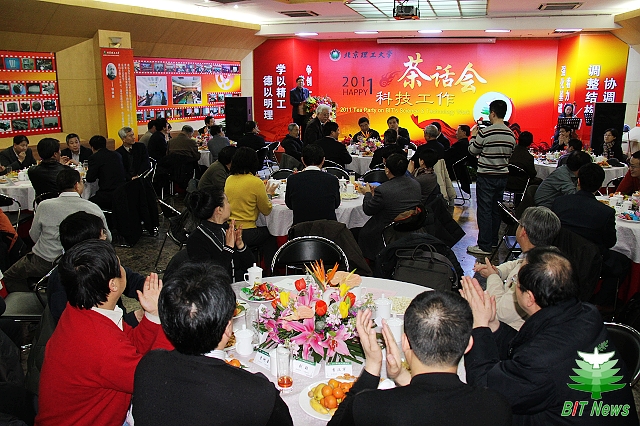 1月13日下午,北理工在国际教育交流中心召开2011年科技工作茶话会。党委书记郭大成、校长胡海岩以及其他校领导,中国科协书记处书记冯长根教授、院士、校学术委员会主任、在职二级教授、百篇优秀博士学位论文指导教师、国家科技奖第一获奖人、973首席专家、国家级重点实验室主任、专业学院院长、书记、科研副院长、学部主任,学校办公室、科研院等相关职能部门代表、青年教师及学生代表等共100余人出席。会议由校长助理、科学技术研究院常务副院长陈杰主持。