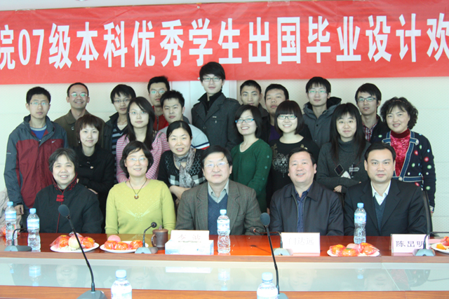 3月2日上午10点,软件学院2007级本科优秀学生出国做毕业设计欢送会在软件楼召开。软件学院党委书记李波、副院长闫达远、副书记陈旵明,负责国际交流的赵丰年老师,07级班主任朱玉文老师、商建云老师,负责学生事务的方平老师、柳文艳老师、董大海老师和黄芸老师,以及13名07级出国做毕业设计的优秀同学参加了本次会议。会议由陈旵明主持。
