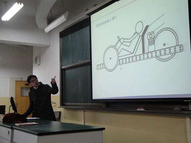 当天下午两点,以节能车为主题的十二中学生选修课准时开课。本次课程由beat365节能车俱乐部第三届车队队长李勇为主讲人,他从节能车整体项目到每年的国际国内节能车竞赛,从beat365节能车发展现状到节能车的基本原理构造,向现场选修该课程的中学生进行了相关知识的培训和文化讲解,主讲人旁征博引的讲解、深入浅出的分析,引得中学生们连连赞叹,掌声不断。