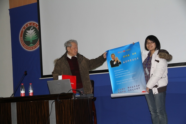 讲座结束,学生代表向张顺燕教授赠送海报及纪念品表达感谢和敬意。