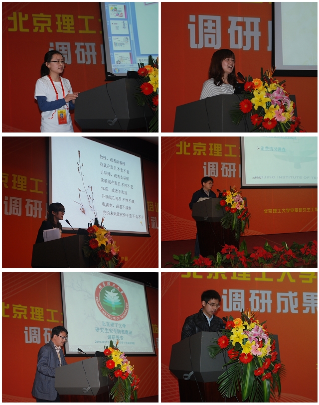 为更好地帮助学院了解社会调研的基本程序步骤、掌握调研方法,此次干训中特别安排实践教学环节。学员们围绕高校研究生日常工作的具体问题,本着客观、务实的理念经过近半年的考察调研,形成了五篇以实例及数据作为支撑、颇具深意的调研报告,并在大会中进行调研成果汇报,内容涉及研究生生活习惯、研究生压力源、导师资助制、饮食消费、安全防范等多个方面,从研究生自身的角度审视研究生在校学习生活等多方面问题。汇报中,学员们与在场评委老师畅谈心声、群策群力,共同探讨分析各类问题的根源及解决途径。