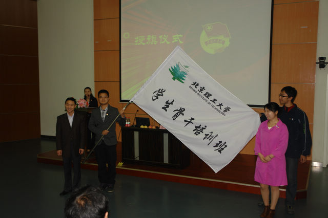 在激动人心的气氛中,校长助理姚利民老师与校团委副书记衡靖老师共同为2011年学生骨干培训班授旗,2011年学生骨干培训班正式拉开帷幕。