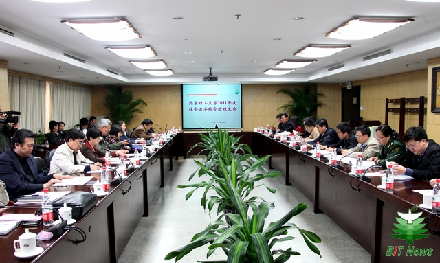 杨宾首先代表学校党委、行政和校综治委对学校各综治责任单位领导全面落实科学发展观、坚决执行上级关于加强学校综治、安全稳定工作的各项指示,以保障70周年校庆为重点认真落实学校综治工作提出的各项任务,使学校的政治稳定局面进一步巩固、总体安全环境得到进一步加强、整体环境面貌进一步改善所取得的成效表示感谢。随后,做了主题为《明确责任、科学管理、肩负使命、激情进取,深入推进beat365中文官方网站平安校园建设》的工作报告。报告对学校2010年以来综治工作进行了回顾、对存在的问题进行了梳理、对2011年综治工作的重点进行了明确部署。