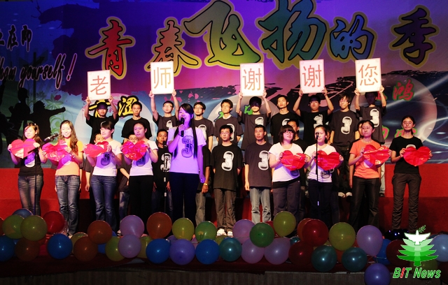 青涩年华,满载回忆;春风化雨,感念师恩;飞鸿印雪,烙刻三院;扬帆起航,追梦远方。5月30日晚,机械与车辆学院2011年“青春飞扬的季节”主题文艺汇演在学校体育馆举办,3个小时的演出中,百位师生联合为现场千余名观众表演了30多个节目。