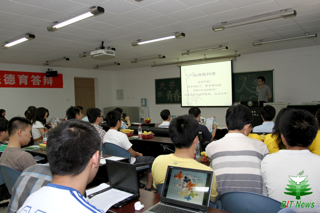 同学们用独特的方式与感悟、个性的语言与视角回顾了大学四年的点点滴滴:从良乡到中关村校区的成长变迁,从大一懵懂走向大四成熟的心路历程;体验了第一次面试、第一次支教、第一次实习的传奇经历;也有凭借坚韧的毅力经历了考研的艰辛;更有在得到朋友帮助的同时,学会了关注别人的幸福。张新禹同学用英语完成了他的德育答辩,“The only way to do great job is to love what you do”,完美诠释了他对于学习的执着追求与无限热爱。吕春良同学以申请出国留学的经历与大家分享了他“一步难,一步佳”的生活感悟。还有以宿舍为单位进行答辩,回忆了大学四年美好的集体生活,表达了对班级同学的美好祝愿。